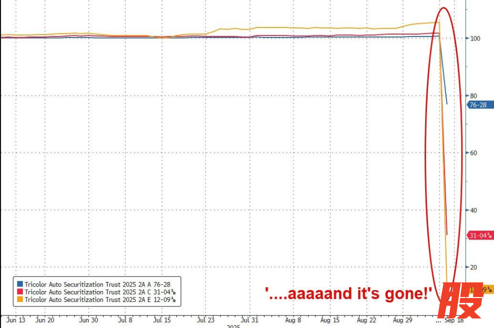 在债券连续数周上涨之后,似乎源于市场对美国消费者尤其是最低收入群体的信心不足,次级汽车贷款机构特里科勒控股(Tricolor Holdings)背后近20亿美元的债务价格周三突然崩盘,全美债权人争相追索该公司剩余资产并试图控制损失。