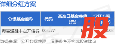本站消息,6月18日发布《海富通融丰定期开放债券型发起式证券投资基金第十次分红公告》。本次分红为2025年度第2次分红。公告显示,本次分红的收益分配基准日为6月6日配股宝,详细分红方案如下:
