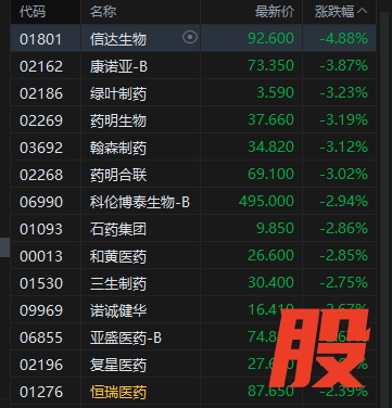 创新药概念走弱,信达生物跌超4%。基金经理表示,现在应保持对于生物医药板的密切关注,而非“退场”。复盘历轮生物医药行情,在美联储降息周期,全球生物医药板块共振,带来高弹性;且国内历次牛市行情,生物医药从不缺席。当下正迎来有利的宏观环境,而且从产业趋势看,BD并不是一次性的现金流入,另据海外媒体报道,多款创新药谈判已经进入深水区,后续临床推进和商业化或会带来源源不断的现金流,本轮创新药的产业趋势是明确和确定的。短期的市场的调整,反而可能给真正质优的创新药企业提供了一次难得的买点。