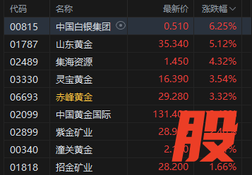 黄金股拉升,山东黄金涨超5%。中金公司判断,金价在降息周期中呈现“先涨后调、长期受益”的规律,降息周期中金价中枢往往抬升。因此,短期需警惕降息兑现后的回调风险,但中长期仍具配置价值;若地缘风险升温或衰退确认,金价或重拾趋势性上涨。