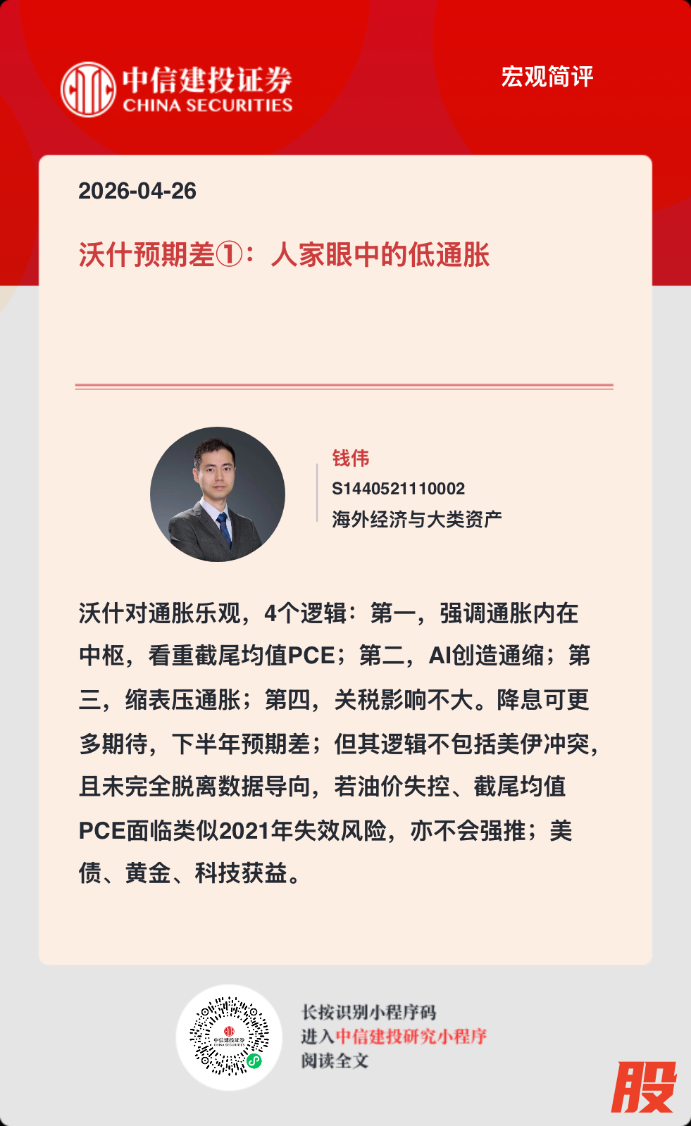 政策和市场含义:沃什倾向低通胀,降息可更多期待,是下半年重要预期差;但其逻辑不包括美伊冲突,且未完全脱离数据导向,若油价失控、截尾均值PCE面临类似2021年失效风险,亦不会强推;降息交易下,美债、黄金相对更获益,美股风格也继续偏向科技。