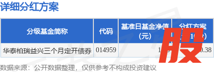 本站消息捷元网,6月18日发布《华泰柏瑞益兴三个月定期开放债券型证券投资基金分红公告》。2025年度第一次分红。公告显示,本次分红的收益分配基准日为6月6日,详细分红方案如下: